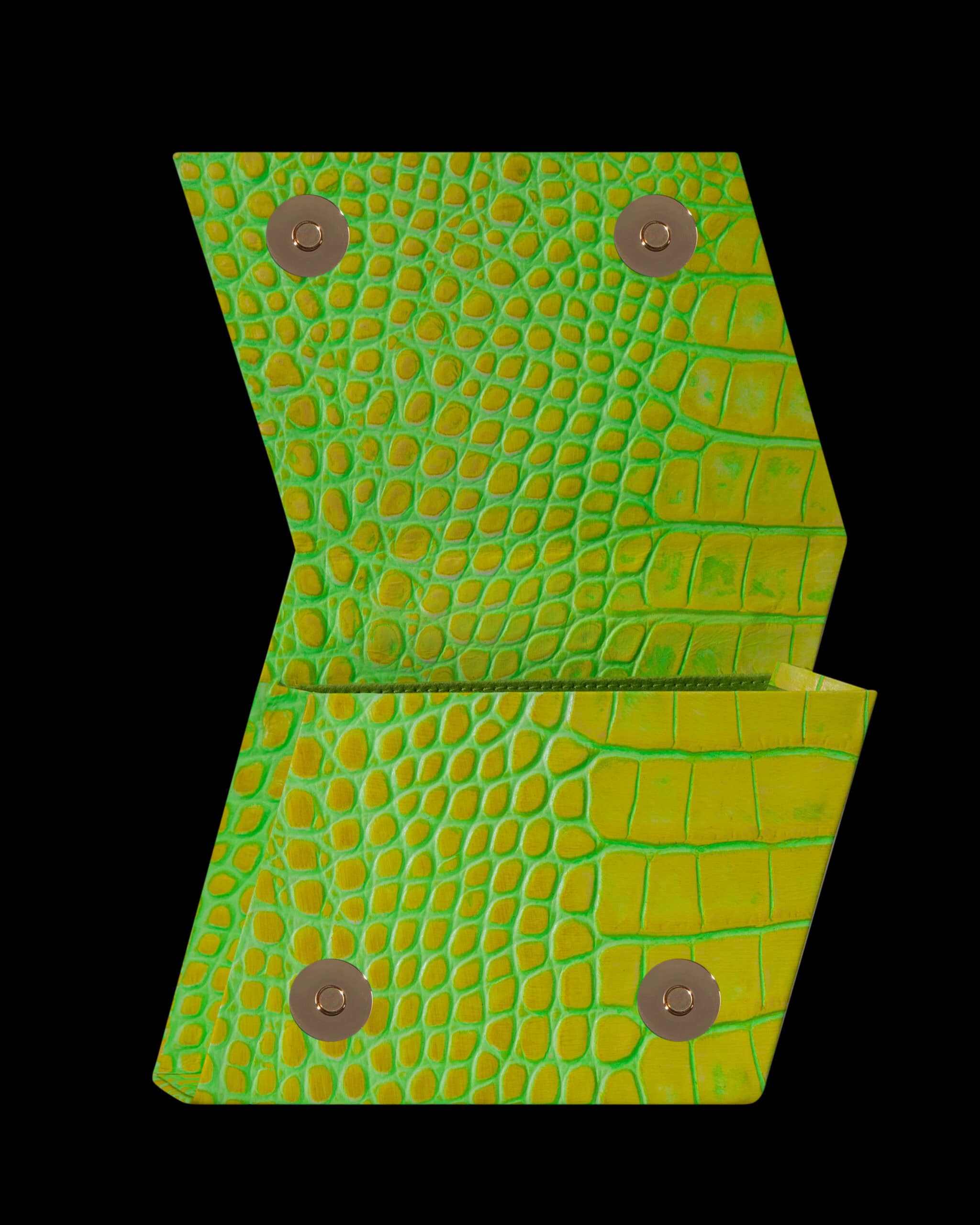 Crocodile embossed leather.